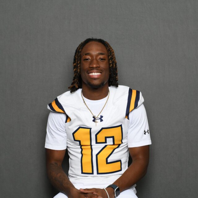 I am super proud to be a member of the first-ever established football team here at Clarke. It was always my dream to play football in college. I had all the skills to do so, but getting here was definitely not easy. I tore my ACL in my junior year of high school, which took a long time to recover from and also made me question if I would still be recruited to play football at the collegiate level. I came back my senior season and finished strong both athletically and academically, but had no interest from any coaches nor any scholarship opportunities. Luckily, I was able to walk-on at College of the Canyons, a junior college in California. I did not find nearly as much success as I had hoped there, but still received 10 new offers at the end of that year from NAIA schools. I actually found Clarke through Twitter. After one conversation with Coach Regalado, I was all in. I received All-Conference honors after my first season at Clarke; I had finally found a home. My favorite memory from Clarke was playing our first football game on ESPN. I had never experienced playing in front of such a large crowd, which was phenomenal.